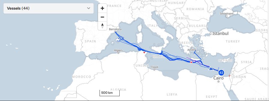Foto: Trenutna lokacija Flotile za Gazu / Screenshot globalsumudflotilla.org
